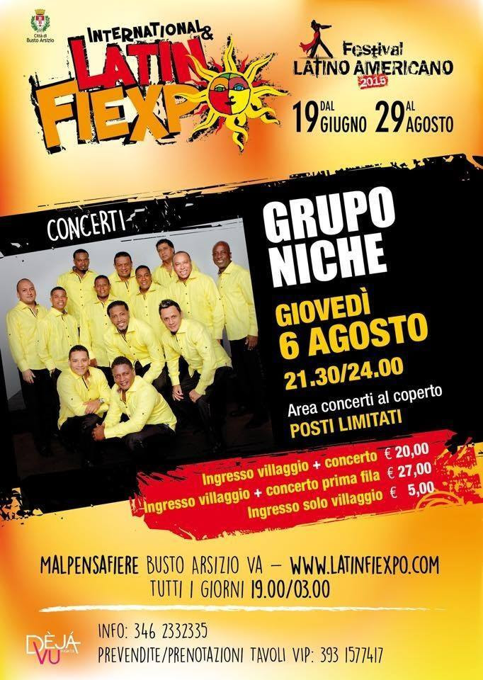 Mañana 6 de agosto el GRUPO NICHE continuará su gira muy cerca a Milán, en el LatinFiexpo en donde presentará su música ante una gran audiencia latinoamericana residente en Europa. El 7 la gira continuará en Bélgica. El 8 en Alemania y el 9 de nuevo en Italia, ésta vez en Roma.