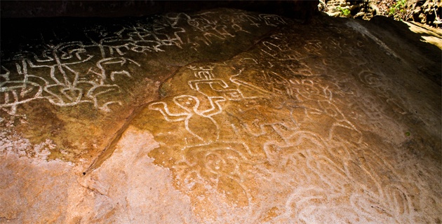 Petroglifo Mokaná que tiene alrededor de 900 años de antigüedad, ubicado en Tubará.Foto: Cortesía Jorge Salazar