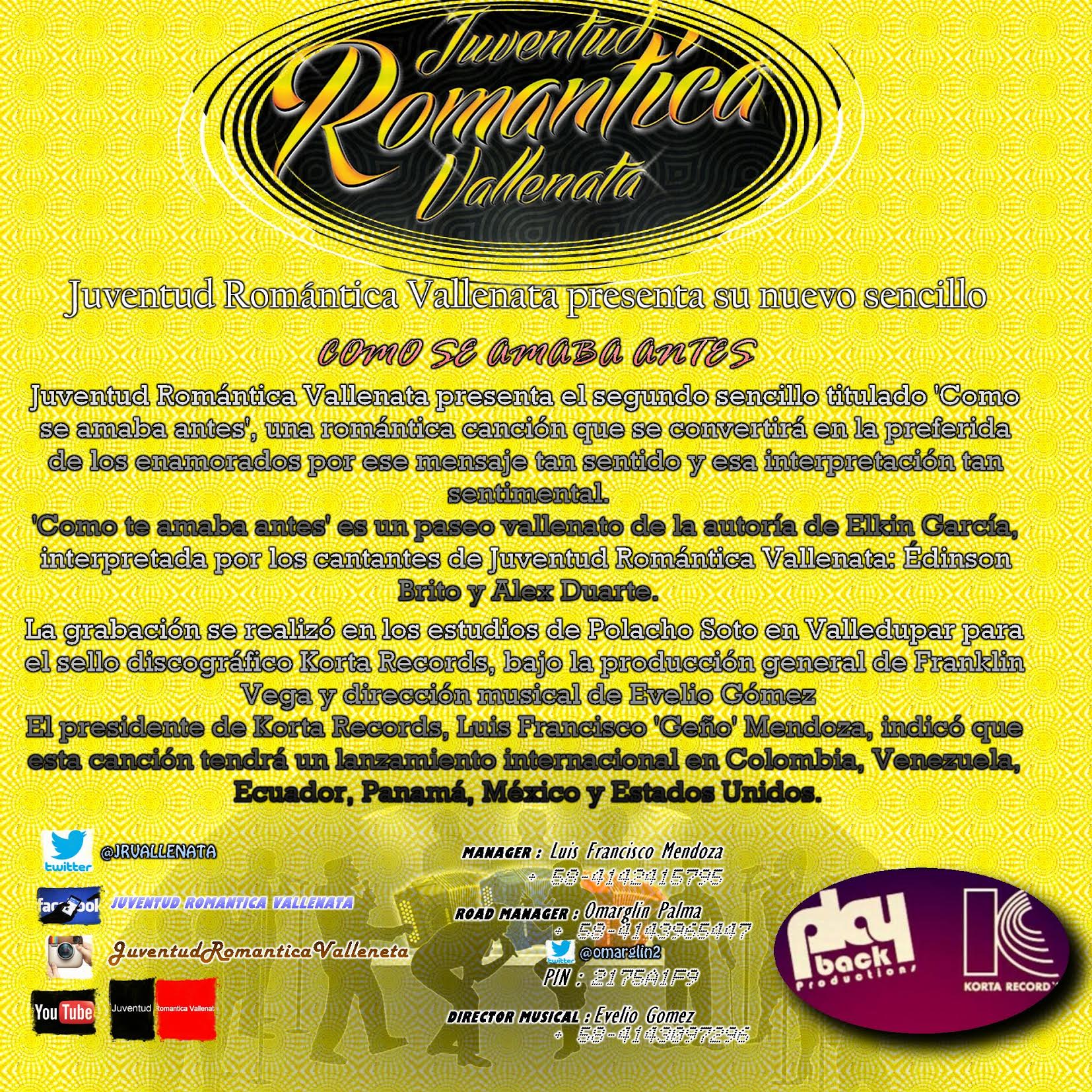 Juventud Romántica Vallenata EXCLUSIVO! Descarga: ‘Como Se Amaba Antes’ Lo Nuevo de Juventud Romántica Fecha: agosto 19, 2015Autor/a: portalvallenatonet 0 Comentarios EXCLUSIVO! Descarga: «Como Se Amaba Antes ‘Lo Nuevo de Juventud Romántica Vallenata MP3: https://goo.gl/cohPTo VIDEO: https://www.youtube.com/watch?v=6JRbnWuWRCU Follow @portalvallenato Comparte esto: Haz clic para compartir en Facebook (Se abre en una ventana nueva) Facebook Haz clic para compartir en X (Se abre en una ventana nueva) X Haz clic para compartir en LinkedIn (Se abre en una ventana nueva) LinkedIn Haz clic para compartir en Reddit (Se abre en una ventana nueva) Reddit Haz clic para enviar un enlace por correo electrónico a un amigo (Se abre en una ventana nueva) Correo electrónico Haz clic para imprimir (Se abre en una ventana nueva) Imprimir Haz clic para compartir en Tumblr (Se abre en una ventana nueva) Tumblr Haz clic para compartir en Pinterest (Se abre en una ventana nueva) Pinterest Haz clic para compartir en Pocket (Se abre en una ventana nueva) Pocket Haz clic para compartir en WhatsApp (Se abre en una ventana nueva) WhatsApp Haz clic para compartir en Telegram (Se abre en una ventana nueva) Telegram Me gusta Cargando... Relacionado