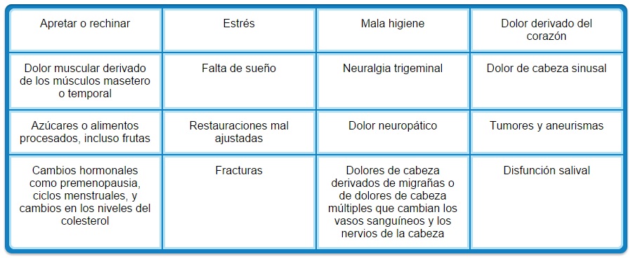 ¡Pero, no tan rápido! Hay que conocer y tomar una decisión sensata. La siguiente tabla muestra varias razones por las que los dientes pueden doler o estar sensibles, pero entienda que no hay suficiente espacio en este artículo para profundizar. La mejor forma de evaluar su dolor específico sería con un profesional dental calificado.