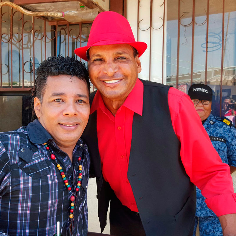 Farid Ortiz al lado de Juan David ‘El Pollito’ Herrera al terminar de actuar en la Cárcel Judicial de Valledupar.