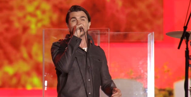«El Papa Francisco es una inspiración para el mundo y para nosotros», dijo Juanes en inglés antes de interpretar «Odio por amor», cuya letra es un llamado a la paz, anunciando que «es tiempo de cambiar».