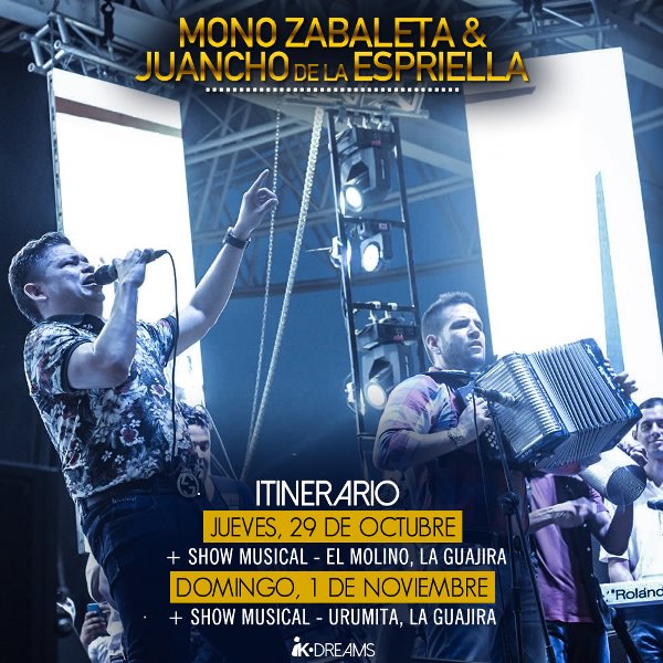 Por lo pronto este fin de semana la gira inicia en El Molino, Guajira, donde el Mono & Juancho presentarán su show musical el día jueves y posteriormente el domingo lo harán en Urumita, también en La Guajira.