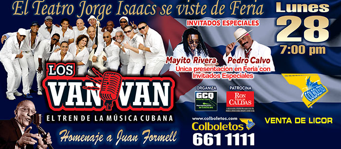 Bogotá, 28 dic (PL) La legendaria orquesta cubana Los Van Van actuará hoy en la tradicional Feria de Cali, una de las más famosas de Colombia, concierto con el que rendirán homenaje al maestro y fundador de la agrupación Juan Formell.