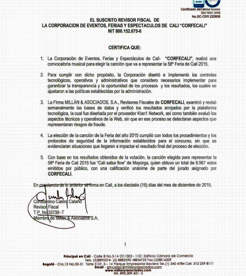 En tal sentido, Corfecali no admite ningún cuestionamiento sobre su transparencia y aporta el acta de la revisoría externa que acompañó el proceso en calidad de garante de su seriedad.