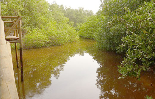 El mangle mantiene sus hojas húmedas de sal líquida. El sabor de la hoja del Mangle Negro es salado, es el alimento favorito de las iguanas, por eso les llaman ‘mangles iguaneros’. Unas raíces sobresalen del agua a la altura del puente, esos son los mangles rojos que se encuentran en los suelos pantanosos a la orilla de las aguas.
