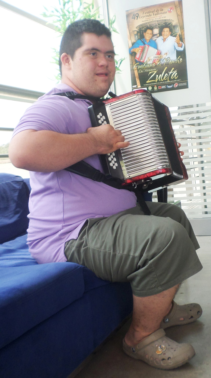“Quiero tocar acá”, indicó, así como lo ha hecho en distintos escenarios de su tierra natal, San Gil, Santander. El síndrome de Down no ha sido un obstáculo para darle rienda suelta a las ganas de potencializar su talento, y es así como su tía Carmen cuenta que el año pasado lo trajeron al 48 Festival de la Leyenda Vallenata, y esa fue la llama que encendió aún más su amor por la música vallenata.