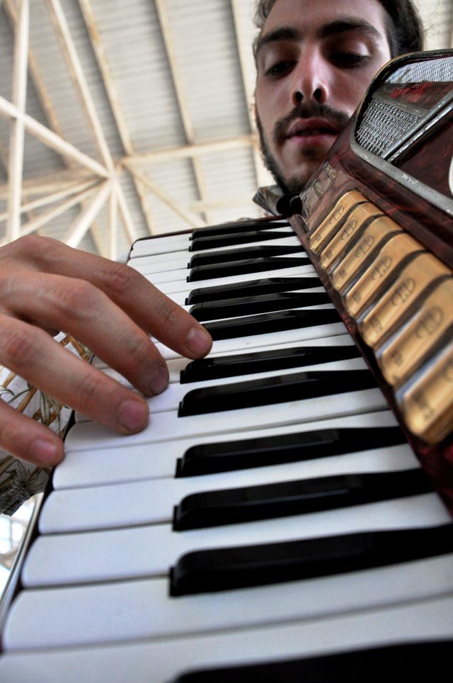 En esas correrías comenzó a investigar sobre Colombia y su música, encontrándose con la cumbia, y después con el vallenato. “Una vez encontré una canción que se llama ‘Ay hombe’. Desde ahí empecé a escuchar canciones como ‘La gota fría’ (Emiliano Zuleta), ‘Matildelina’, (Leandro Díaz) y ‘Pedazo de acordeón’ (Alejandro Durán), entre otras, y me encontré con ritmos distintos como merengue, paseo, puya y son, que no los conocía, y de inmediato me empezaron a gustar. Hasta conocí otro tipo de acordeón que se llama diatónico o de botones”, dice, mientras da las explicaciones precisas.