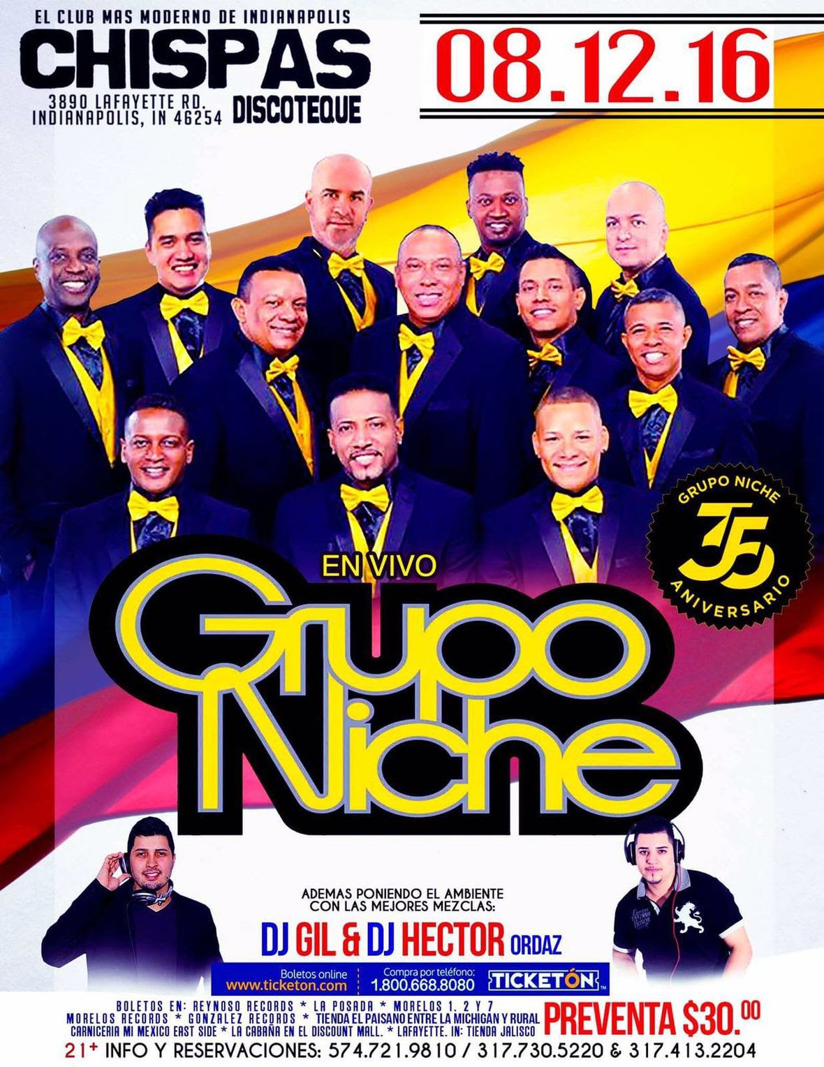 GRUPO NICHE continúa su recorrido musical, en Estados Unidos, este fin de semana, iniciando en Indianápolis, estado de Indiana, el viernes 12 de agosto en Chispas Discoteque. Al día siguiente el grupo se desplazará al estado de Ohio para realizar una primera presentación en la ciudad de Eastlake en el local Nazca, el sábado 13 de agosto. Asimismo cerrará el fin de semana en el mismo estado pero ésta vez en la ciudad de Columbus, su capital, en el Bicentennial Park, el domingo 14 de agosto, en donde el Grupo Niche presentará su show musical en el Festival Latino.