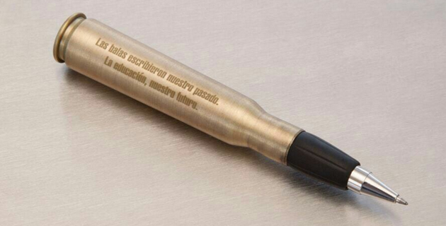 El lapicero fue creado a partir de una bala en colaboración entre el Ministerio de Educación y la agencia McCann Worldgroup