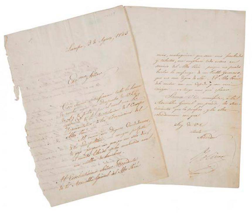 «Es un gran honor proteger a un pueblo entero y servir de guía… El Alto Perú tiene mi espada y mi corazón, no tengo nada más que ofrecer», dice Bolívar en esa carta, que tiene un valor estimado de 10.000 dólares.