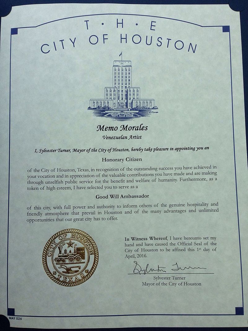 Ciudadano Honorífico y Embajador de Buena Voluntad de la Ciudad de Houston, Texas