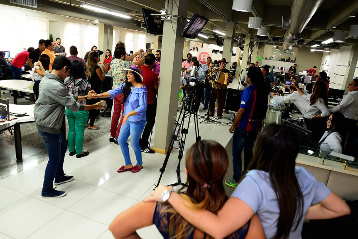 En compañía de ‘Los locos del Swing’, nombre que recibe su agrupación, deleitó a los periodistas de esta casa editorial, además de su música, con anécdotas e historias de cómo surgieron las letras de las canciones y recordando el momento en que grabó su primera canción a la edad de 15 años, la cual fue ‘La casa en el aire’ del maestro Rafael Escalona.