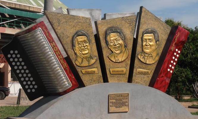 El monumento a los ‘Tres Grandes’: Jorge Oñate – Diomedes Diaz y Poncho Zuleta, reaparece con nuevos retoques en la glorieta de Hurtado a orillas del rio Guatapurí en Valledupar.