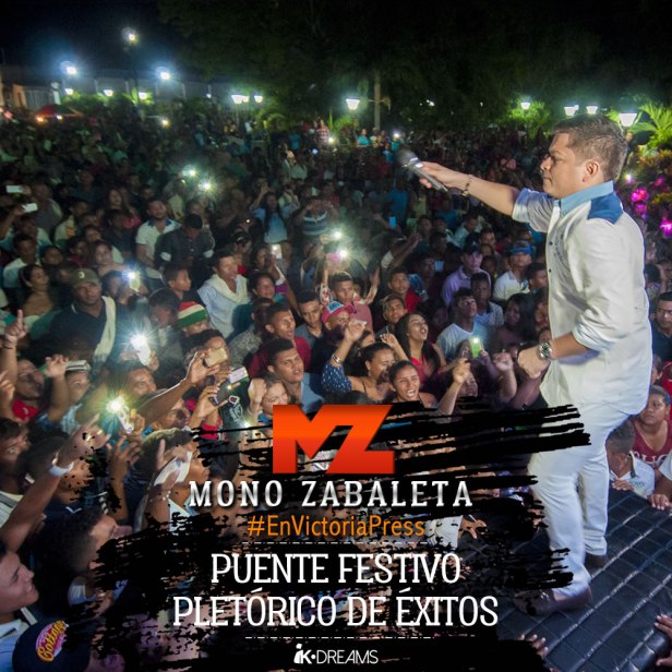 Una jornada bastante fructífera resultó el puente festivo pasado para el Mono Zabaleta, después de animar cuatro conciertos en serie, lo que ratifica el excelente momento que atraviesa nuestro artista, su agrupación es una de las más solicitadas en los últimos años, producto de un trabajo permanente, siempre en busca de permanecer En Victoria.