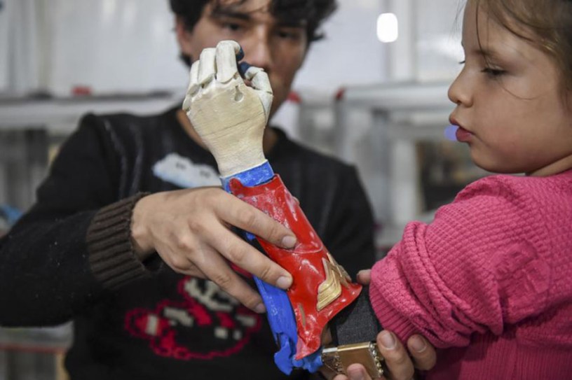 Pero ahora está feliz de ver a su hijo más contento. «Creo que estas prótesis les ayudan mucho a ellos» por «el simple hecho de que parece más un juguete que una prótesis», opinó Medina, mientras cargaba a Daniel, que ahora podrá decorar su brazo con la armadura de Ironman.