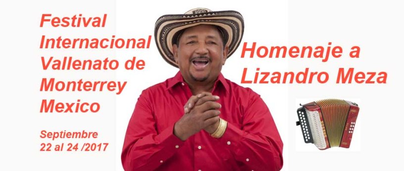 El Festival Internacional Vallenato de Monterrey en su Decimoprimera Edición a celebrarse del 22 al 24 de Septiembre del 2017, estará rindiendo un merecido homenaje a Lisandro Meza por su destacada trayectoria como compositor, acordeonero, cantante y arreglista durante 56 años de trabajo contando con una discografía de 124 títulos y más de 2,000 temas de los que destacan: «Vallenato Canta Vallenato», «Sal y agua», “Las Tapas», «Baracunatana», «El Siete», «La Cumbia del Amor», «Lejania», «Miseria humana», entre otras. Versátil al componer salsa, porro, cumbia, guaracha y vallenato.