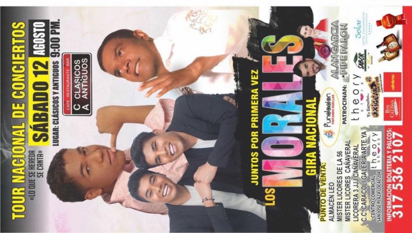 En este súper concierto Los Morales compartirán escenario con Nelson Velásquez, Jean Carlos Centeno, Amín Martínez y por la música popular Darío Gómez y Los Rayos de México.