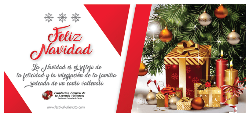 Una tarjeta enmarcada en el corazón del folclor te envía la Fundación Festival de la Leyenda Vallenata que preside Rodolfo Molina Araújo, para desearte la mejor Navidad en unión de toda tu familia. Que la paz, la alegría y un canto vallenato te acompañen en esta linda fecha.