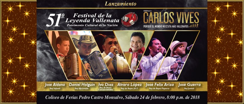 Para el sábado 24 de febrero a partir de las 8:00 de la noche en las instalaciones del Coliseo de Ferias Pedro Castro Monsalvo, la Fundación Festival de la Leyenda Vallenata hará el lanzamiento del 51° Festival de la Leyenda Vallenata en homenaje a Carlos Vives con una importante revista escénica-musical.