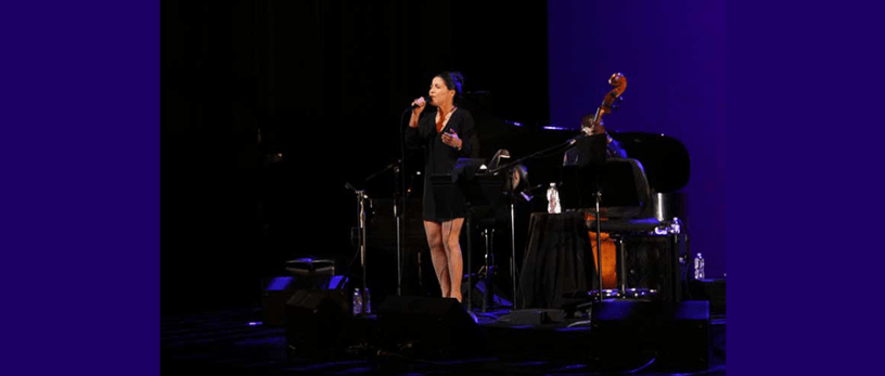 En compañía de su trío y con su melodiosa voz como arma para conquistar al público, la intérprete subió anoche al escenario del Teatro Eisenhower del Centro John F. Kennedy para las Artes Escénicas en un concierto único con temas propios y de reconocidos compositores.