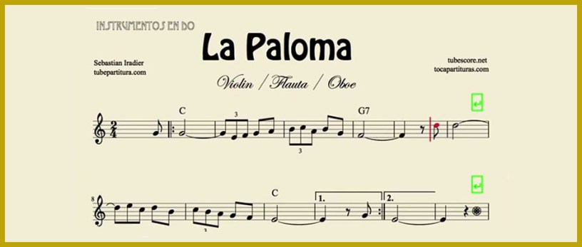 Compuesta y escrita en 1863 por el español Sebastián Iradier (nacido el 20 de enero de 1809 en Lanciego, Álava y muerto en 1865 en Vitoria) a esa pieza musical se le ubica entre las más populares que se haya escrito. En un siglo y medio La paloma ha sido producida e interpretada en las más diversas culturas, escenarios, arreglos y grabaciones en los más disímiles géneros incluyendo ópera, pop, jazz, rock, bandas militares y música folklórica.