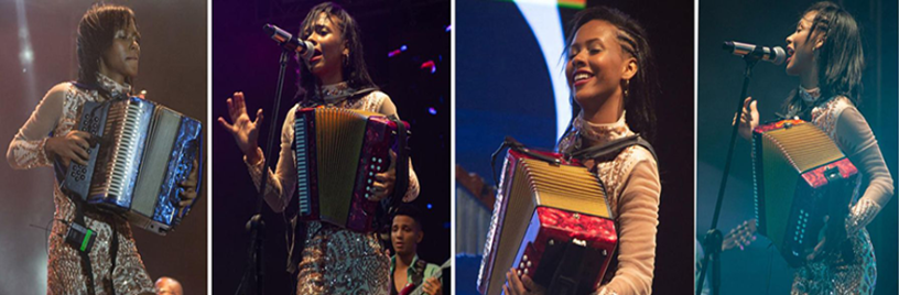 Ráfagas de acertadas notas tanto en los pitos como en los bajos… Y una ráfaga disparada por la cámara para captar el seriado gráfico que transmite la vitalidad de Leidy con el acordeón terciao, al tiempo que canta…
