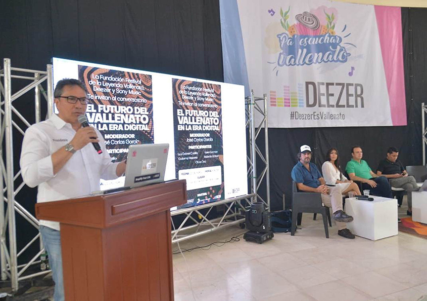 En el conversatorio participaron el presidente de la Fundación Festival de la Leyenda Vallenata, Rodolfo Molina Araújo; el director artístico de Sony, Guillermo Mazzorra; el gerente de la plataforma digital Deezer para la región Andina y cono sur, Luis Gabriel Castillo; el cantante Jorge Iván ‘Churo’ Díaz; la artista Karen Lizarazo y el acordeonero y productor musical Rolando Ochoa.