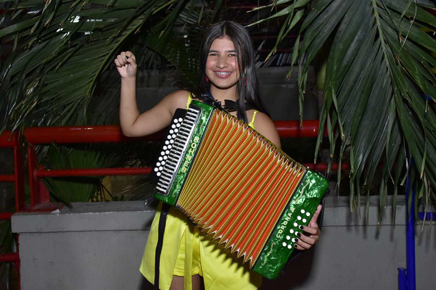Sería mentira decir que por llevar siete años de estar tocando acordeón se me quitó el miedo de tocar acordeón ante el público. Antes de subirme a la tarima sentía diferentes emociones como ansiedad y nerviosismo, pero cuando subí y saludé a los jurados me sentí cómoda, lo cual se intensificó cuando vi al público respaldándome; empecé a tocar el merengue, que se escuchó duro desde el principio, lo que afianzó mi seguridad.