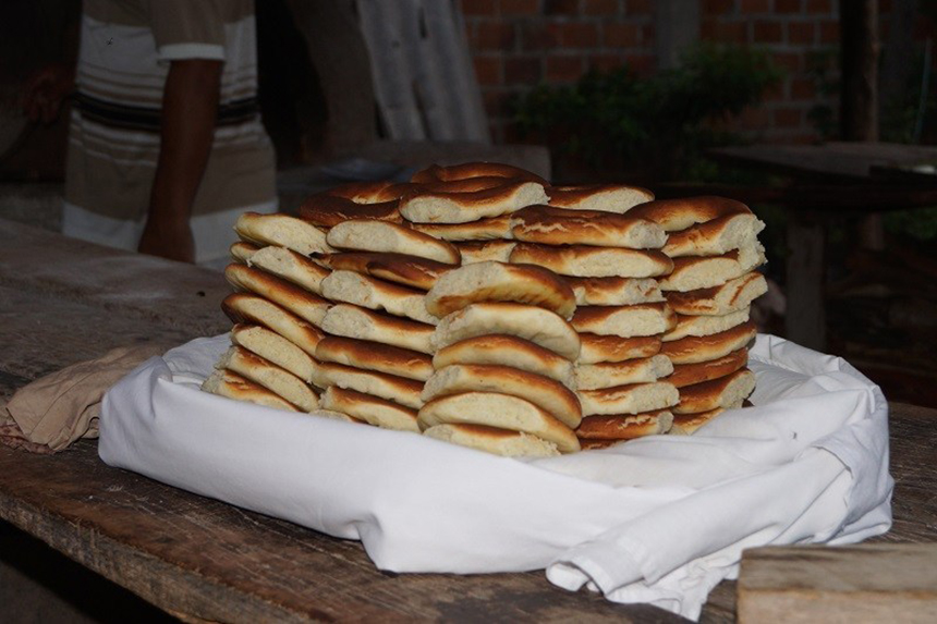 “Todo eso me sirvió para aprender, ahora me encargo de preparar la masa y es un poco pesado porque se hace por grandes cantidades, aparte de que me toca preparar el horno; por cada 30 kilos de masa diaria se queman de 10 a 14 palos de leña, apenas se queman yo barro el horno con unas escobillas y ya queda listo para meter las bandejas”, manifiesta.