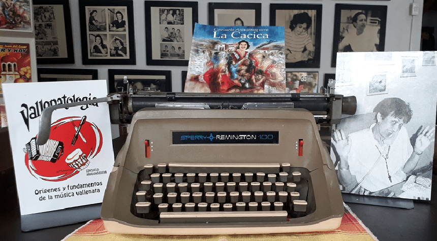 Su primera máquina de escribir y el libro Vallenatología. CORTESÍA