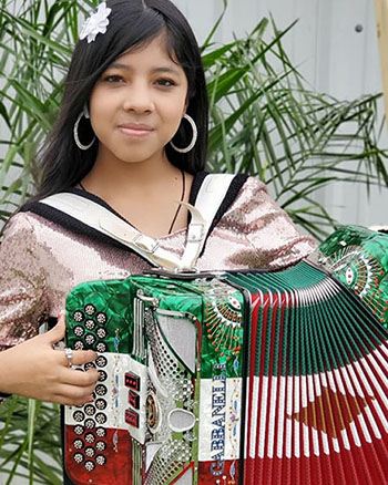 Indira. La verdad que sabía unas canciones, pero Yaxeni me rebaso: Yaxeni tiene una mente de elefante (risas) es muy inteligente para agarrar así, rápido, en el acordeón.