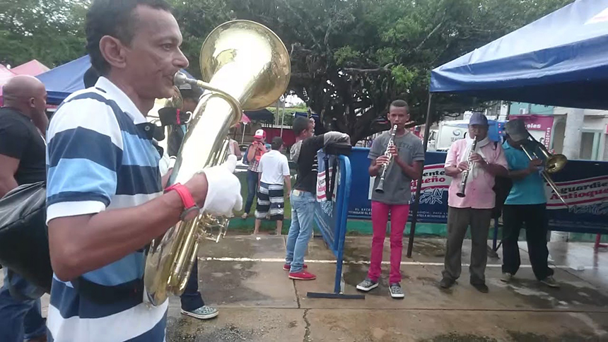 De los pocos integrantes de la banda, sosegados y pacientes en aquella fastidiosa y eterna espera, era Luis Rivas Benítez. Contrastaba con el resto de sus compañeros que se paseaban nerviosos con el instrumento en la mano, cual Banda Borracha: de arriba abajo… de arriba abajo; Lucho, en una de sus actitudes irreverentes, se recostó para apaciguar el tedio debajo de una mata de higuera. A los quince minutos que se incorporó, varios de sus compañeros notaron su rostro radiante. Pidió papel y uno de ellos le entregó un pedazo de partitura desechable. El reloj marcaba un poco más de las 11 de la mañana. Luego se retiró y, volvió a sentarse de nuevo bajo la mata. Sin mediar palabra alguna empezó a garrapatear algo con el lápiz en el reverso de la partitura. Transcurrieron otros quince minutos, pero esta vez de manera extraña se levantó sudoroso, serio y algo ansioso; luego se dirigió a donde estaba “El Chelo” Cáceres: