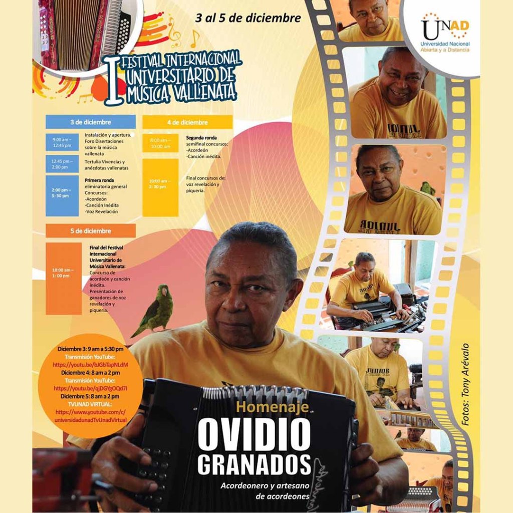 La Universidad Nacional Abierta y a Distancia (UNAD), durante los días 3, 4 y 5 de diciembre desarrolló de manera virtual el Primer Festival Internacional Universitario de Música Vallenata, que fue liderado por el rector general Jaime Leal Afanador, la directora zonal Caribe, Mardelia Padilla, la decana de Artes y humanidades, Marta Viviana Vargas y el docente Melquisedec Salas.