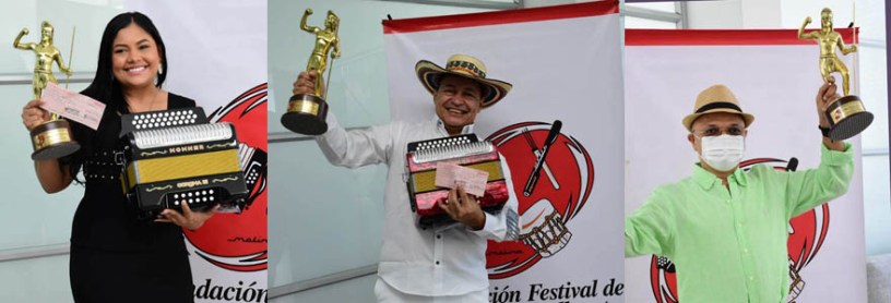 Los ganadores que recibieron sus premios y trofeos ‘Cacique Upar’ son en el concurso de Acordeón Profesional Manuel Eduardo Vega Vásquez, Javier Rodrigo Álvarez Orozco y Omar Alberto Hernández Brochero.
