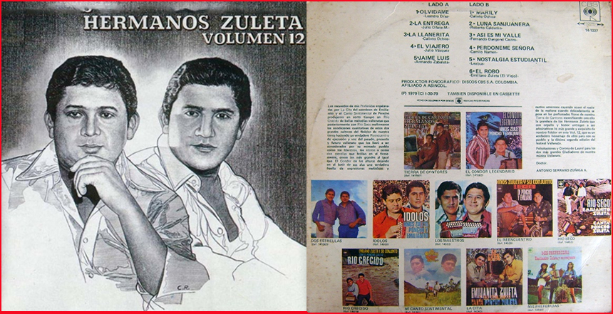 Sin duda, justificada fue la extraordinaria nota de presentación que escribió para este LP el experimentado docente y excelente compositor Antonio Serrano Zúñiga q.e.p.d. , la cual se puede leer en la parte posterior de la carátula, de la cual transcribimos textualmente una parte que dice así: “…como los más grandes, igual que el cóndor en las alturas, dejando en el batir de sus alas una verdadera huella amorosa, cayendo como el rocío de la mañana, cuando delicadamente se posa en las perfumadas flores de nuestra tierra de cantores, escenificando con ello la grandeza de Los Hermanos Zuleta que con orgullo y honor entregan a sus admiradores lo más grande y exquisito de nuestro folclor en este Volumen 12”. Por lo anterior, es esta una fecha trascendental para Poncho y Emiliano, ¡¡pero también para quienes valoramos su música y su obra imperecedera!!