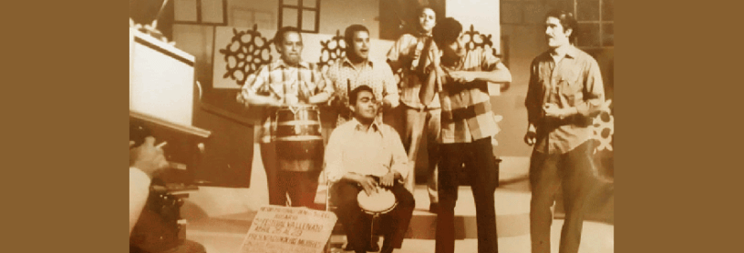 Los Universitarios en televisión. De izquierda a derecha: Nazario Zabaraín, Pablo López, Álvaro Cabas, Esteban Salas y Pedro García.