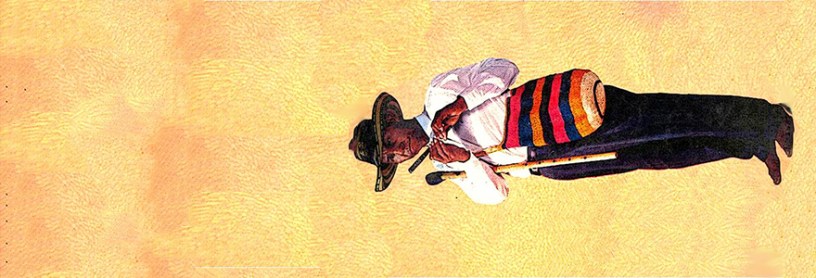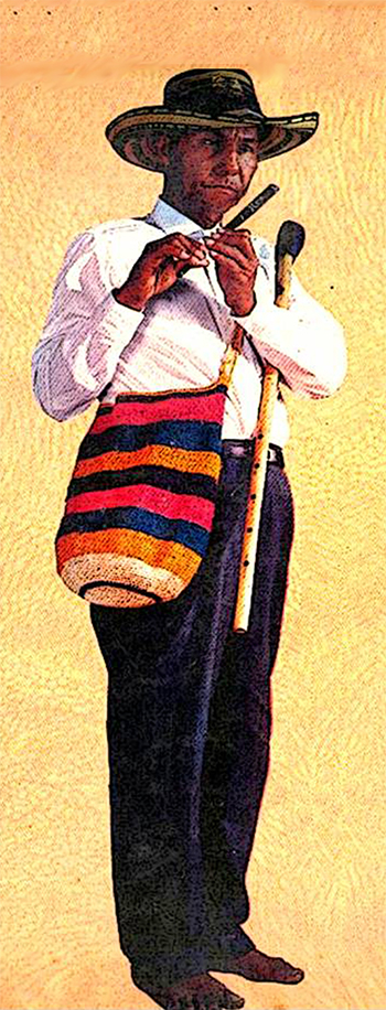 “No era joven, no era viejo”, de pie se levantaba algo del piso, solo la visión de un ojo adornaba su rostro y escasos dientes mostraba su boca. Un sombrero vueltiao, algo averiado cubría su cabeza, una camisa blancuzca y raída, un pantalón caqui, siempre remangado en una boca pierna y una mochila infaltable que guardaba sus secretos; sus flautas de millo, sus gaitas cabezas de cera, que eran su patrimonio económico, su alma y su corazón. Por eso le decían Compae Mochila.
