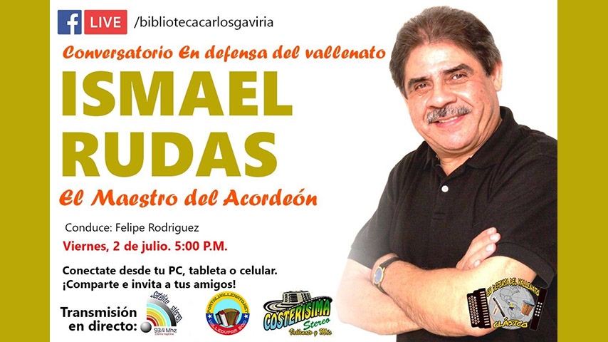 La Biblioteca Popular Carlos Gaviria Diaz de Riohacha y el Movimiento en Defensa del Vallenato Clásico tienen el gusto y el honor de presentar en el Conversatorio en Defensa del Vallenato Clásico al maestro de maestro en la ejecución del vallenato ISMAEL ANTONIO RUDAS MIELES, este viernes 2 de julio a partir de las 3 de la tarde.