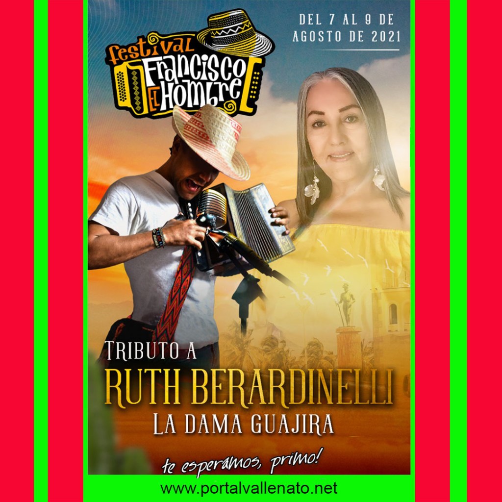 El lunes 9 de agosto será el foro académico ‘La Ruth que yo conocí’, en honor a Ruth Berardinelli, la dama guajira. Un evento presencial con cupos limitados que tendrá lugar en el Centro de Convenciones Anas Maí, será transmitido por la cuenta oficial Facebook.com/festivalfranciscoelhombre a las 5 pm.