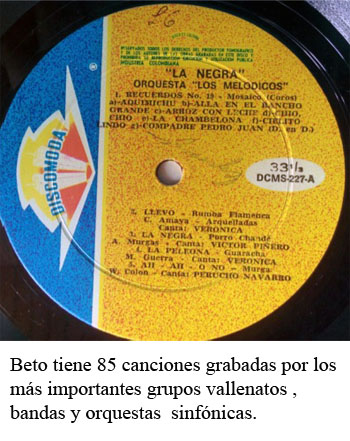 Finalmente y hablando de canciones saca sus cuentas y dice que tiene 85 canciones grabadas por los más importantes grupos vallenatos, por orquestas y sinfónicas. Su lista de canciones que han sido éxitos es innumerable y remata expresando que el inmortal Diomedes Díaz, le grabó únicamente ‘Mi casa risueña’. ‘Beto’ Murgas es uno de los más versátiles expositores en la historia del acordeón: de donde vino y por donde entró, ahí sienta cátedra.