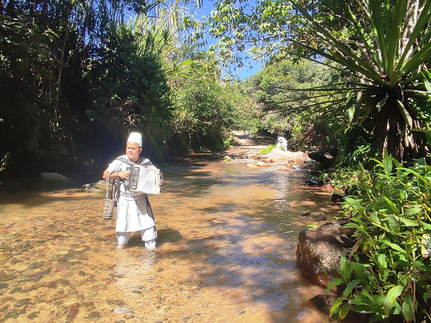 Al aprender a tocar el acordeón ingresé a la agrupación del maestro Andrés ‘El Turco’ Gil y comencé a recorrer muchos países. Viví la experiencia de intercambiar algo de lo que yo represento como indígena ante el mundo. Comienza a crearse el interrogante sobre lo diferencial al ver un indígena interpretando el acordeón y tocando vallenato. Eso era algo que de niño causaba sensación. Comienzo a tocar dentro de la Universidad Popular del Cesar donde me gradué de contador público, a formarme un poco más y a andar en todos los festivales vallenatos. También crecí profesionalmente. Soy licenciado en música de la Universidad del Atlántico, especialista en gestión pública, diseño de proyectos y alta gerencia.