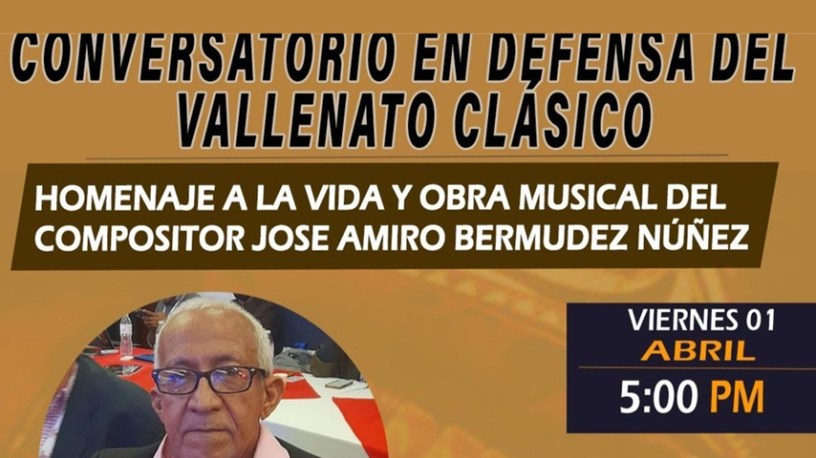 Conversatorio a la Vida y Obra Musical al compositor vallenato José Amiro Bermúdez Núñez organizado por la Biblioteca Popular Carlos Gaviria Diaz de Riohacha y el Movimiento en Defensa del Vallenato Clásico, este viernes 1 de abril, a partir de las 5 de la tarde, estarán en la presentación: Felipe Rodríguez, Juvenal Daza Bermúdez y Adalin Aldana.