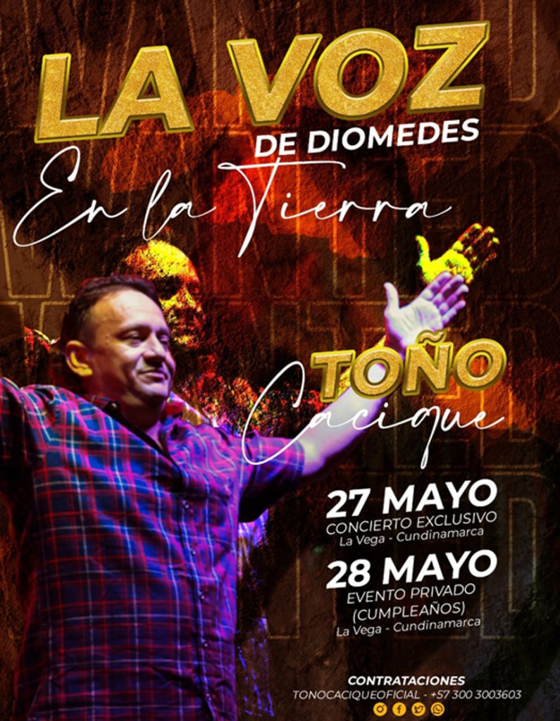 Con ese importante legado del inmortal Diomedes Díaz, el artista ‘Toño Cacique’, tendrá dos espectaculares conciertos en el municipio de La Vega – Cundinamarca.