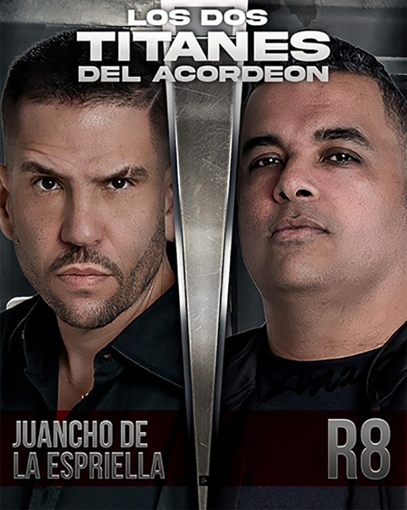 Tanto Juancho cómo R8, llevarán lo mejor de su repertorio en una disputa musical, cada uno con sus agrupaciónes: “Zona 8” con la voz de Laura Hamburger y Jorge Mario Peña y “Los de Juancho” con la voz de Jorge Clavijo y Carlos Mario Parra, y como ingrediente especial habrá un momento especial en el show de los dos titanes, mano a mano, acordeon vs acordeon, pase contra pase dónde el público disfrutará lo mejor del talento de cada uno de estos grandes de la música vallenata.