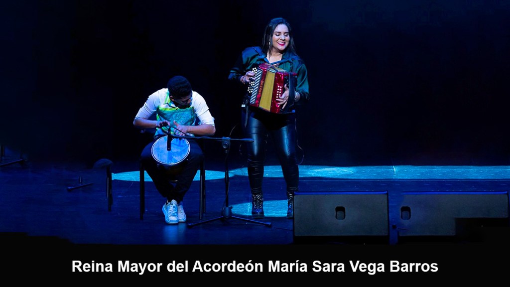 La Reina Mayor del Acordeón María Sara Vega Barros, interpretó ‘El Pollo vallenato’ (paseo) de Luis Enrique Martínez y ‘Aquí gana es la que toca’ (puya) de su autoría.