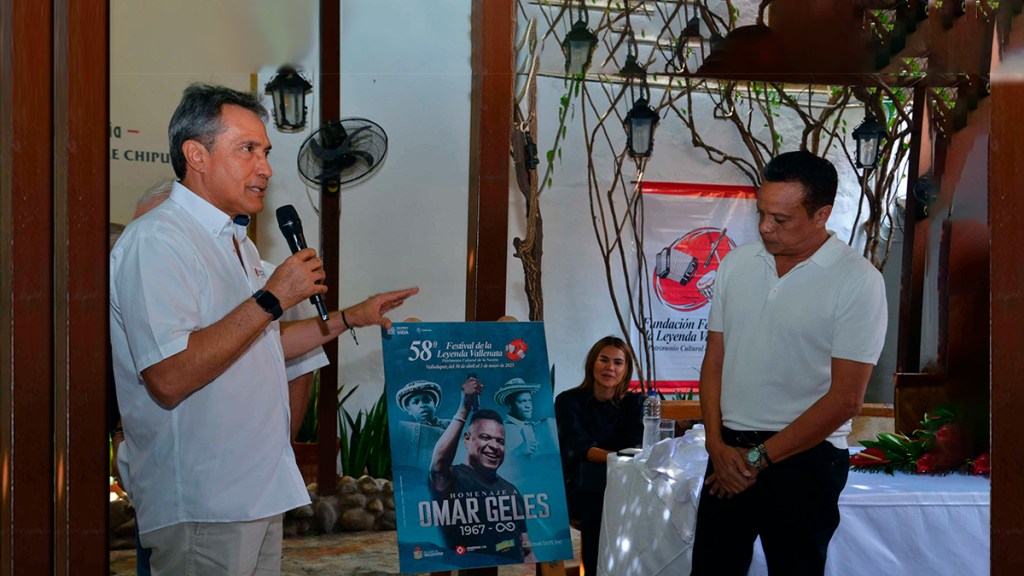 La Fundación Festival de la Leyenda Vallenata en compañía de la familia Geles develó el afiche promocional del 58° Festival de la Leyenda Vallenata, que será en homenaje al Rey Vallenato Omar Antonio Geles Suárez, y se realizará en distintos escenarios del 30 de abril al 3 de mayo de 2025.