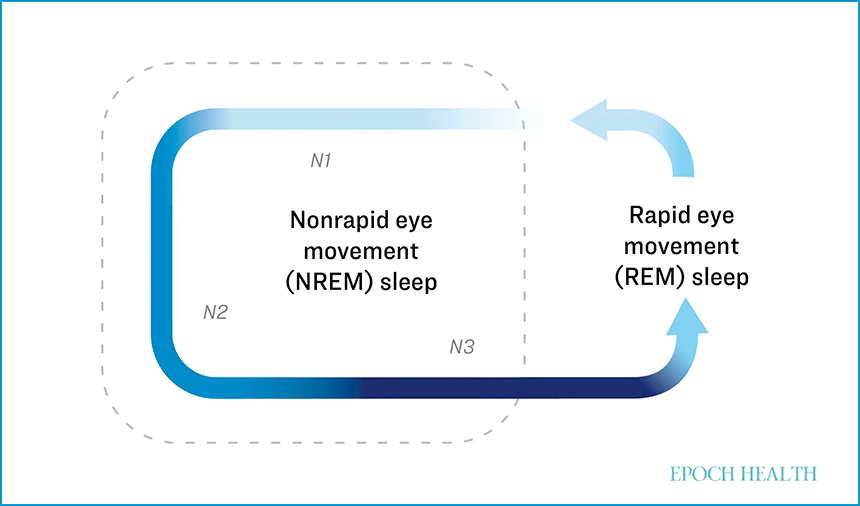 El sueño se divide en dos estados: el sueño de movimientos oculares rápidos (REM) y el sueño de movimientos oculares no rápidos (NREM). NREM representa el 75 por ciento del tiempo total de sueño y se divide a su vez en tres etapas, N1, N2 y N3, cada una de las cuales refleja niveles de sueño progresivamente más profundos.