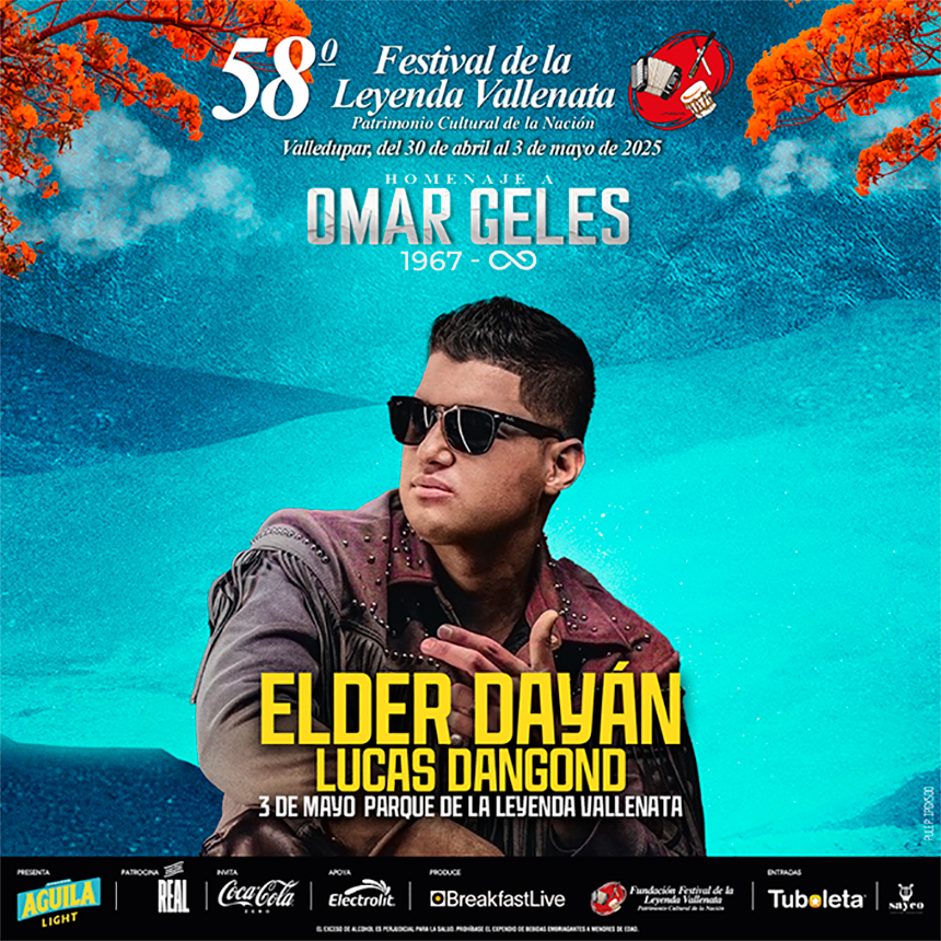 Este año, el Festival de la Leyenda Vallenata rendirá un merecido homenaje a Omar Geles, uno de los grandes compositores e intérpretes del folclor vallenato, quien dejó una inmensa huella musical. Elder Dayán, con su inconfundible estilo y conexión con el público, se suma a la celebración, reafirmando su papel como uno de los artistas más destacados de la nueva generación vallenata.