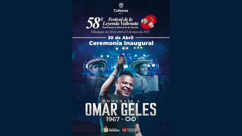 Para el miércoles 30 de abril de 2025 a partir de las 7:00 de la noche en el Parque de la Leyenda Vallenata ‘Consuelo Araujonoguera’, está prevista la ceremonia inaugural del 58° Festival de la Leyenda Vallenata en homenaje al Rey Vallenato Omar Geles.